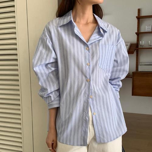 [옷자락]여자 봄여름 시원한 루즈핏 스트라이프 셔츠