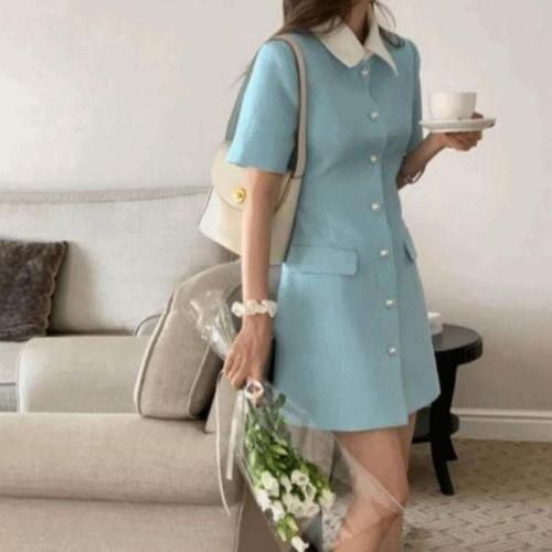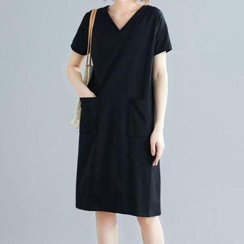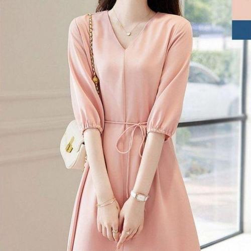 [셀러허브_여성트랜드패션]여자 브이넥 무지 여름 쉬폰 데일리 여성여름원피스 원피스 반팔 여성롱 미니..