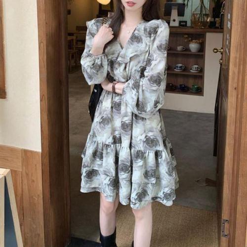 [셀러허브_여성트랜드패션]여자 여성 치마 여자여름원피스 셔링 브이넥 여성 여자원피스 쉬폰 원피스 여..
