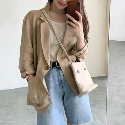 모던한 여성용 린넨 정장 자켓 가벼운 린넨 소재 여성용 아우터 트렌디 자켓 A라인 자켓