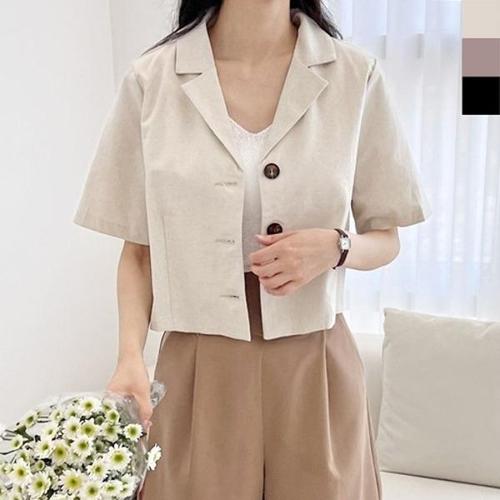 [엄지척]여성 여름아우터 린넨 버튼 크롭 반팔 자켓_20362441_667501