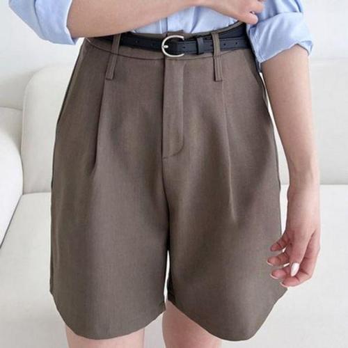 여자 슬렉스 핀턱 트렌드 벨트 반바지 데일리 여름 데