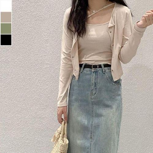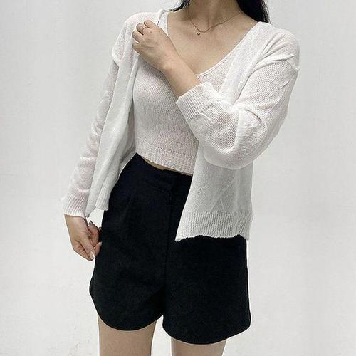 [에이치플러스몰]가을 투피스 나시 크롭 여름 세트 카디건 가디건 여성