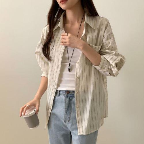 [신상오픈런]여성용 여름 스트라이프 루즈핏 셔츠