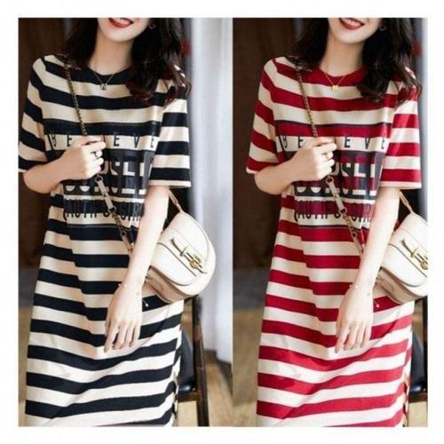 [오너클랜]인기상품 이쁘다요 스트라이프 여름 롱티 롱 봄 면 바캉스 원피스 티셔츠 여성 [WFLMEU8_260419]