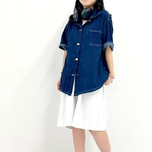 [에이치플러스몰]티엠포 데님 남방 반팔 셔츠 여름 청남방 여성