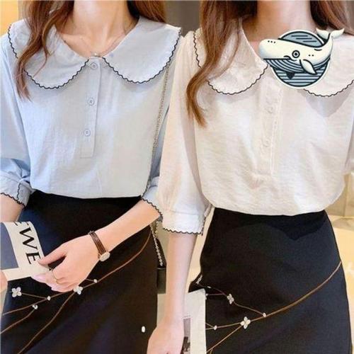 여성 봄 여름 7부 반팔 예쁜 여자 블라우스
