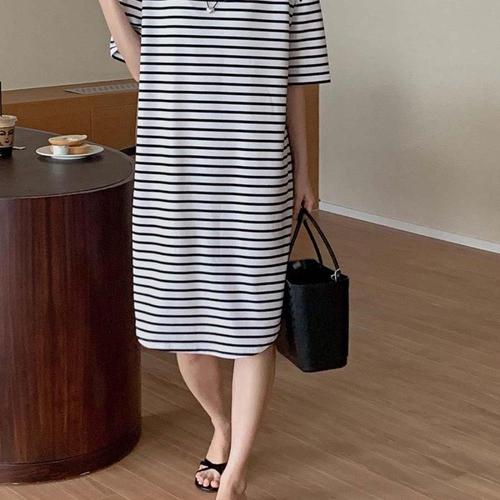 에리페 여성용 편안한 스트라이프 롱 반팔 원피스
