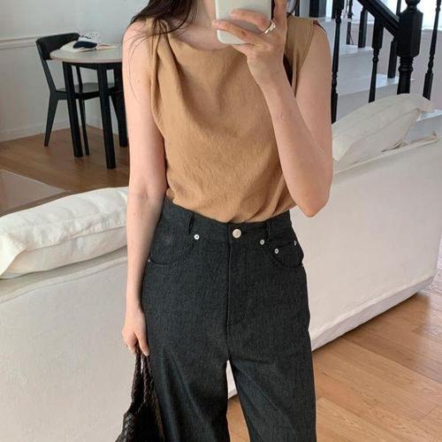 [신상오픈런]여성 어깨디자인 드레이프 민소매 여름 출근용 블라우스