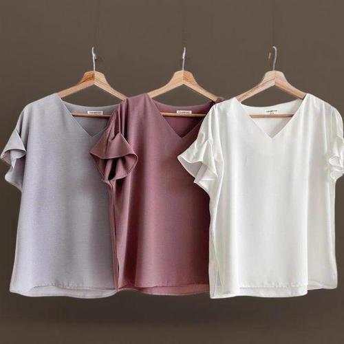 [신상오픈런]여성 여름 하객 패션 프릴 소매 브이넥 슬릿 블라우스