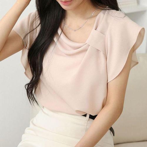[신상오픈런]여성 여름 사무실룩 프릴 소매 묶음 드레이프 블라우스