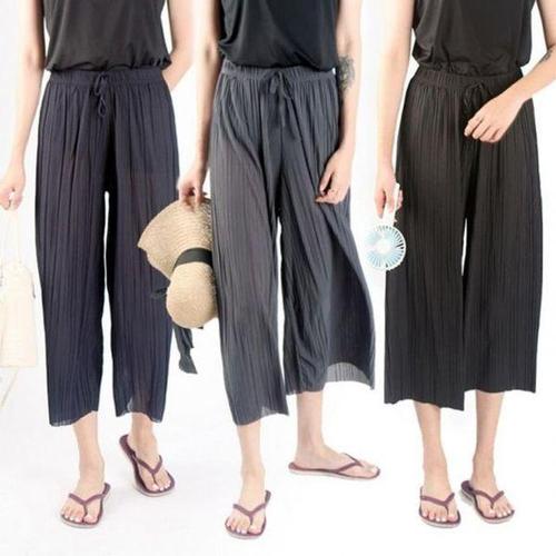 [에이치플러스몰]와이드 팬츠 찰랑 플리츠 여름 밴딩 쿨