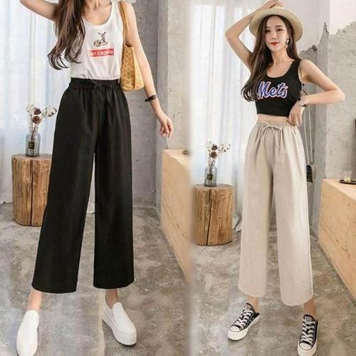 [에이치플러스몰]9부 쿨 바지 린넨 여성 여름 와이드 빅사이즈 밴딩
