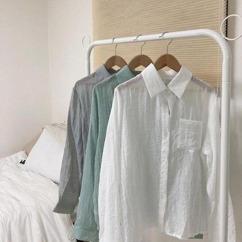 [셀러허브_여성트랜드패션]여성 여자여름와이셔츠 긴팔 시원한셔츠 셔츠 베이직 여자여름셔츠 LM-0050 여..