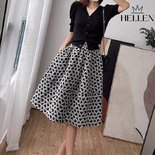 [모노무드]모노무드 데일리 여성 여름 블랙 반팔 체크 스커트 투피스 세트