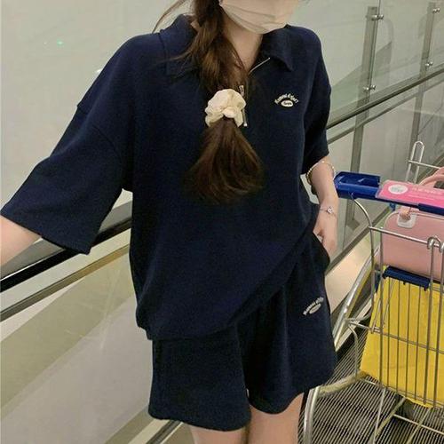 고품질 여성 네이비 컬리지 반팔 트레이닝 세트 꾸안꾸룩 여름셋업 (WFK5T0F)