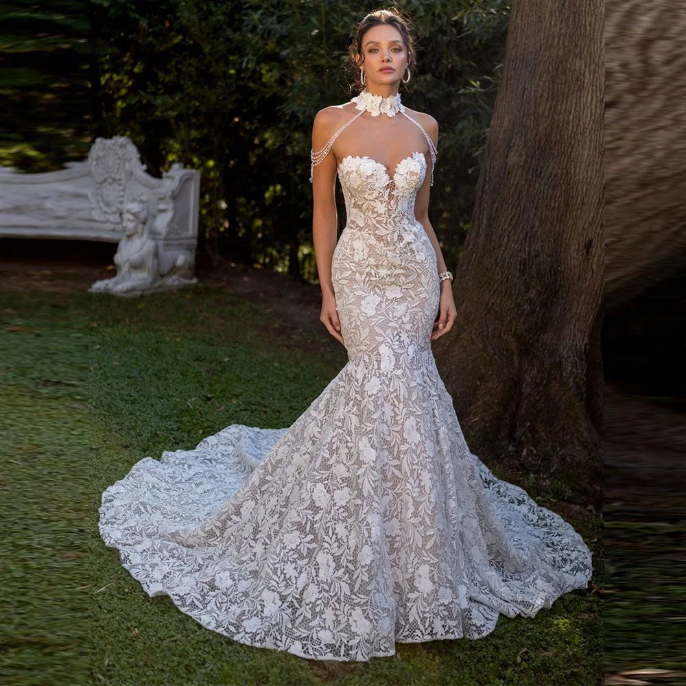 모던 스윗하트 슬리브리스 웨딩드레스 맞춤 제작 우아한 머메이드 레이스 웨딩드레스 매력적인 아플리케 베스티도 데 노비아