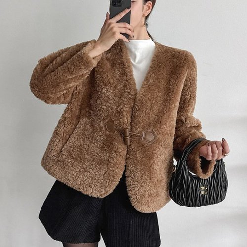 인해하우스 / 겨울 여성 도톰한 브이넥 양털 숏 자켓