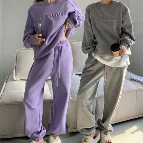 [엄지척]여자 맨투맨 트레이닝 팬츠 세트 기모 데일리 겨울_20388333_667501