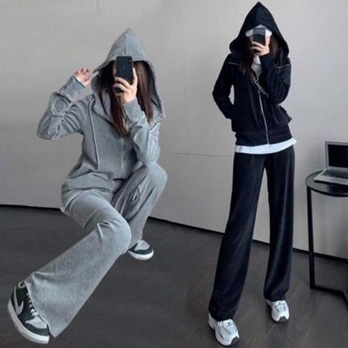 [기모/셋업] 벨벳 후드크롭 집업 와이드세트 꾸안꾸 겨울 트레이닝세트 와이드팬츠 벨로아 퍼안감 데일리룩
