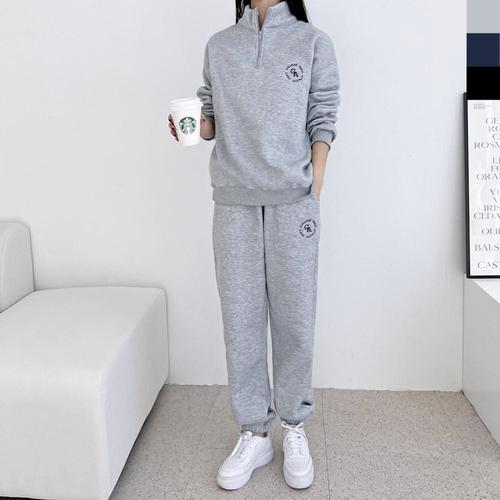 싱싱덴덩 겨울 여성 트레이닝복세트 루즈핏 빅사이즈 레저 고급 기질 기모 트레이닝 바지 투피스