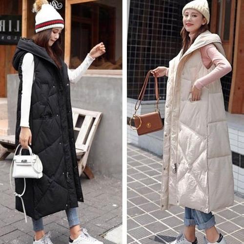 [엄지척]여성 따뜻한 겨울 롱 후드 패딩 조끼 캐주얼 경량_20361424_667501