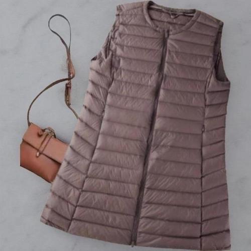 [다잇템][다잇템] 여성 누빔 카라없는 일상용 경량 패딩 롱 조끼_23516640_588872