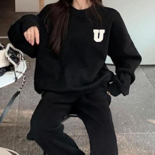 |CCD28D1|여성용 따뜻한 기모 조거 팬츠 맨투맨 세트 가을 겨울용