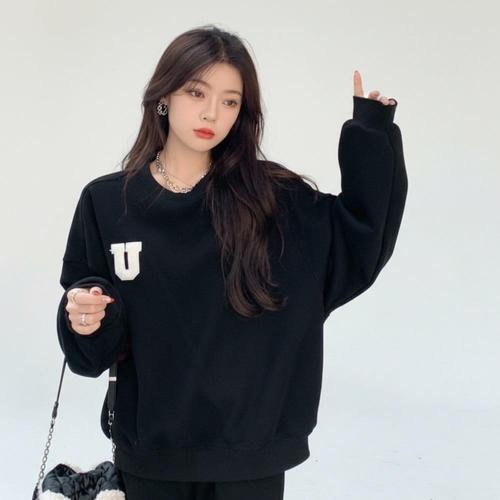 ANYOU 여성 루즈핏 기모 맨투맨 트레이닝복 상하 세트