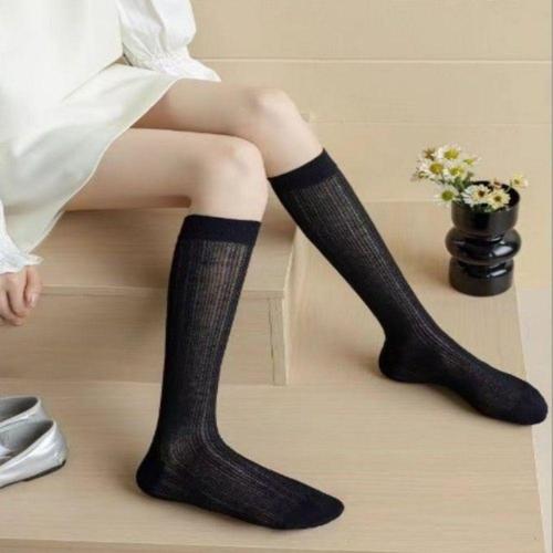 [셀럽하우스]여성 GBKQYUBK 골지 양말 시스루 중목 여름용 얇은 긴양말