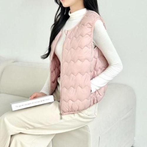 [신상오픈런]여성용 겨울 물결 패턴 퀼팅 조끼 데일리 패딩