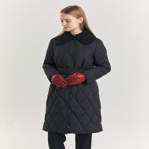 헤지스 여성 [구스다운] 블랙 다이아퀼팅 탈착 카라 롱 중량다운 점퍼 (HSJU4D908BA)