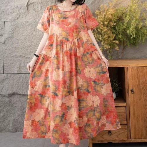 [에이치플러스몰]아레니아 여름 원피스 반팔 코튼 루즈핏 꽃무늬 여성 플라워 롱 엄마 K1543