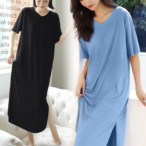 812 빅빅사이즈 국산 순면 5XL 7XL 여성 반팔 라운드 롱원피스 여름 잠옷 실내복 임부복 루즈핏 오버핏 박스티 체형커버 홈웨어