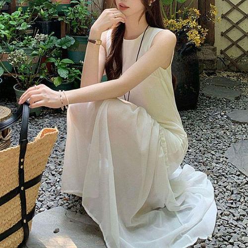 [에이치플러스몰]여자 여름 뷔스티에 레이어드 롱원피스 데일리 스타일