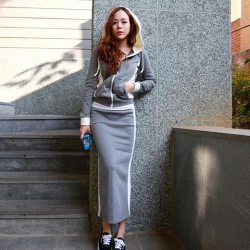 F13128 날씬 후드집업 롱스커트 세트 치마츄리닝 WFL8D3S