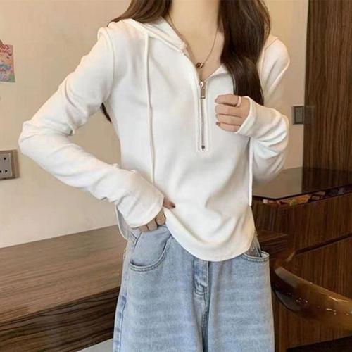 여성 캐주얼 후드 하프 집업 롱 슬리브 티셔츠 WFL3JRK