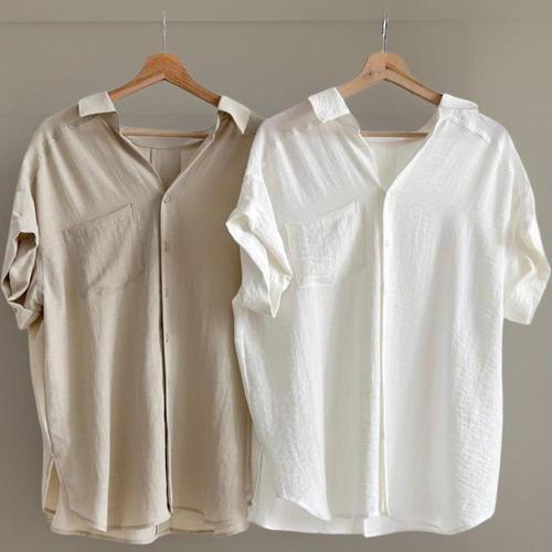 [옷자락]여성 클래식 톤다운컬러 면 린넨 반팔 남방 셔츠
