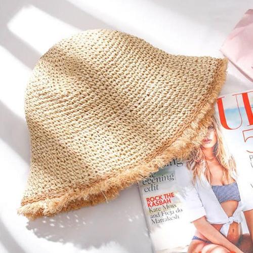 [룽스]밀짚 벙거지 버킷햇 여성 모자 휴가 왕골
