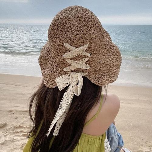 [룽스]리본 라탄모자 여름 밀짚 와이드 여성 모자