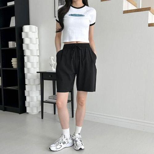[셀러허브_여성트랜드패션]여성 반바지 밴딩 배색 여자트레이닝반바지 여성반바지 여자반바지 5부 팬츠 ..