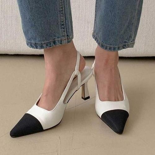 [셀러허브_여성트랜드패션]ONM 청바지 코디 여성 봄 슬링백 구두 스틸레토 배색