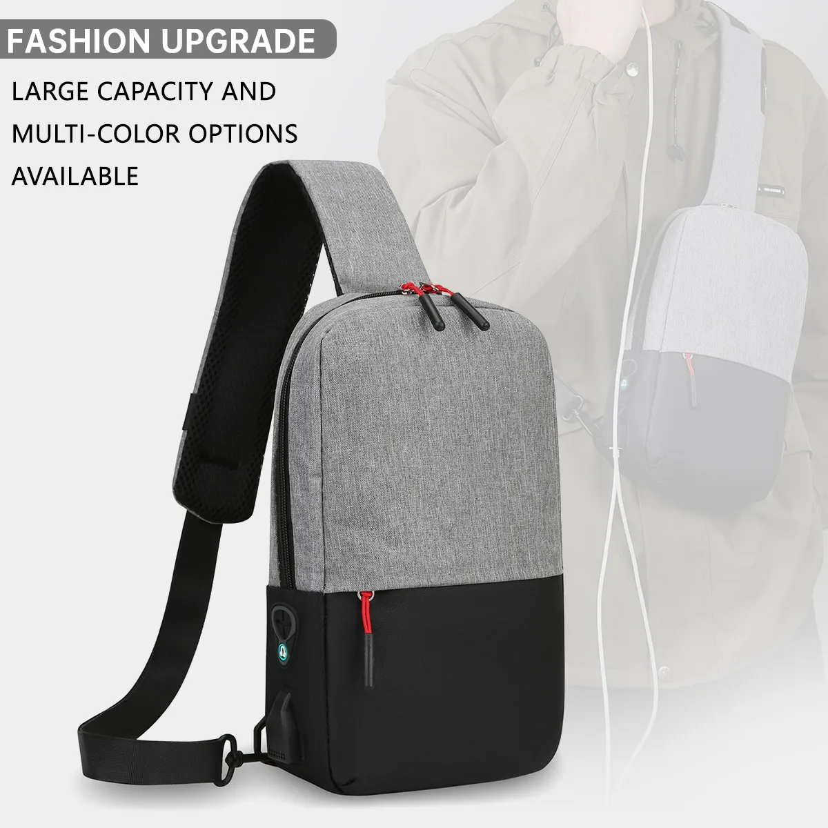 크로스바디 백, 남성용 체스트 백, 기능성 숄더백, 여성용 트렌디 브랜드 숄더백, 새로운 스포츠 백팩, 헤드폰 구멍이 있는 허리 가방