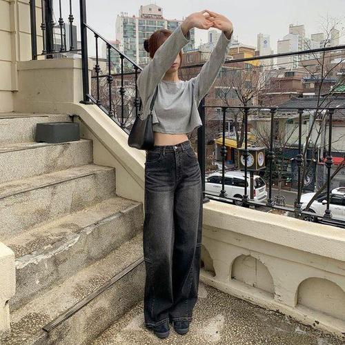 [신상오픈런]여성용 일상 캐주얼 와이드 블랙진