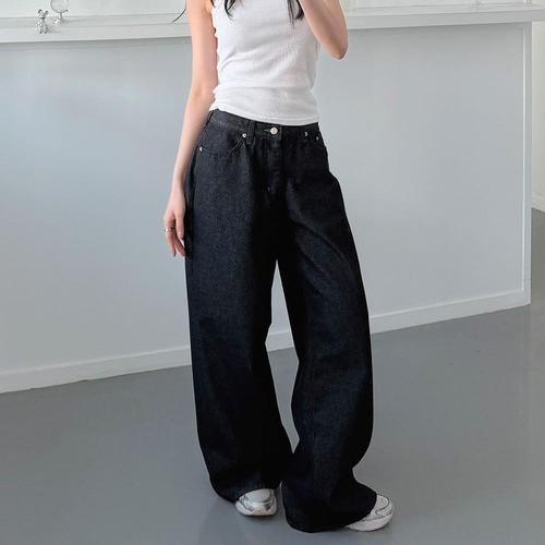 [옷자락] 여자 논페이드 블랙진 와이드핏 백포켓 맥시 데님팬츠