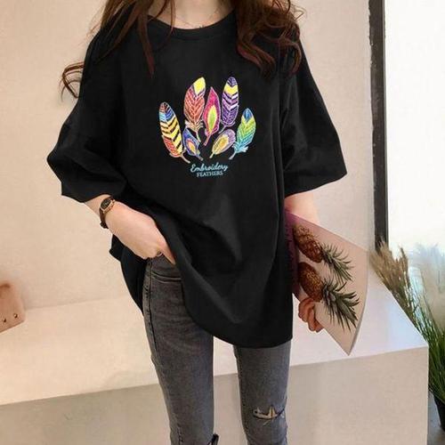 [에이치플러스몰]여성프린팅 빅사이즈티 추천 얇은 반팔티 꾸안꾸 가을