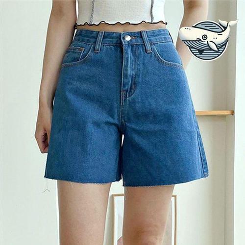 [에이치플러스몰]캐주얼 여자 대학생 여름 코디 투버튼 청 반바지 데님