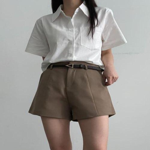 [셀럽하우스]정장 DUNV0112 숏팬츠 여자 벨트포함 슬랙스 반바지 핀턱 여름