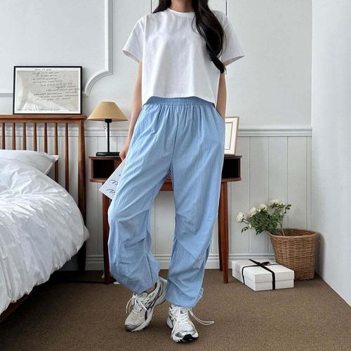[셀럽하우스]여자 QUWK9687 여름 폴가르 파라슈트 스트링팬츠 밴딩 롱팬츠
