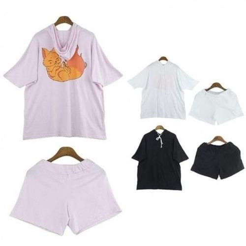 루나모드 시크 후드 와이드소매 반팔세트 K0259
